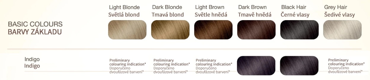 | Složení: | Přírodní, Bez amoniaku, Bez peroxidu, Bez PPD, Vegan |